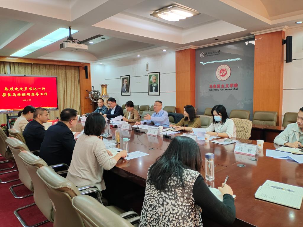 10月23日,校党委副书记、副校长罗锦银赴马院专题调研指导思政课建设工作,对思政课改革创新、大思政课建设、大中小学思政课一体化共同体建设等进行研讨,聚焦推动新时代思政课高质量发展,统筹推进相关工作。宣传部、学工部、研工部、团委、教务处、人事处等相关职能部门负责同志参加调研。