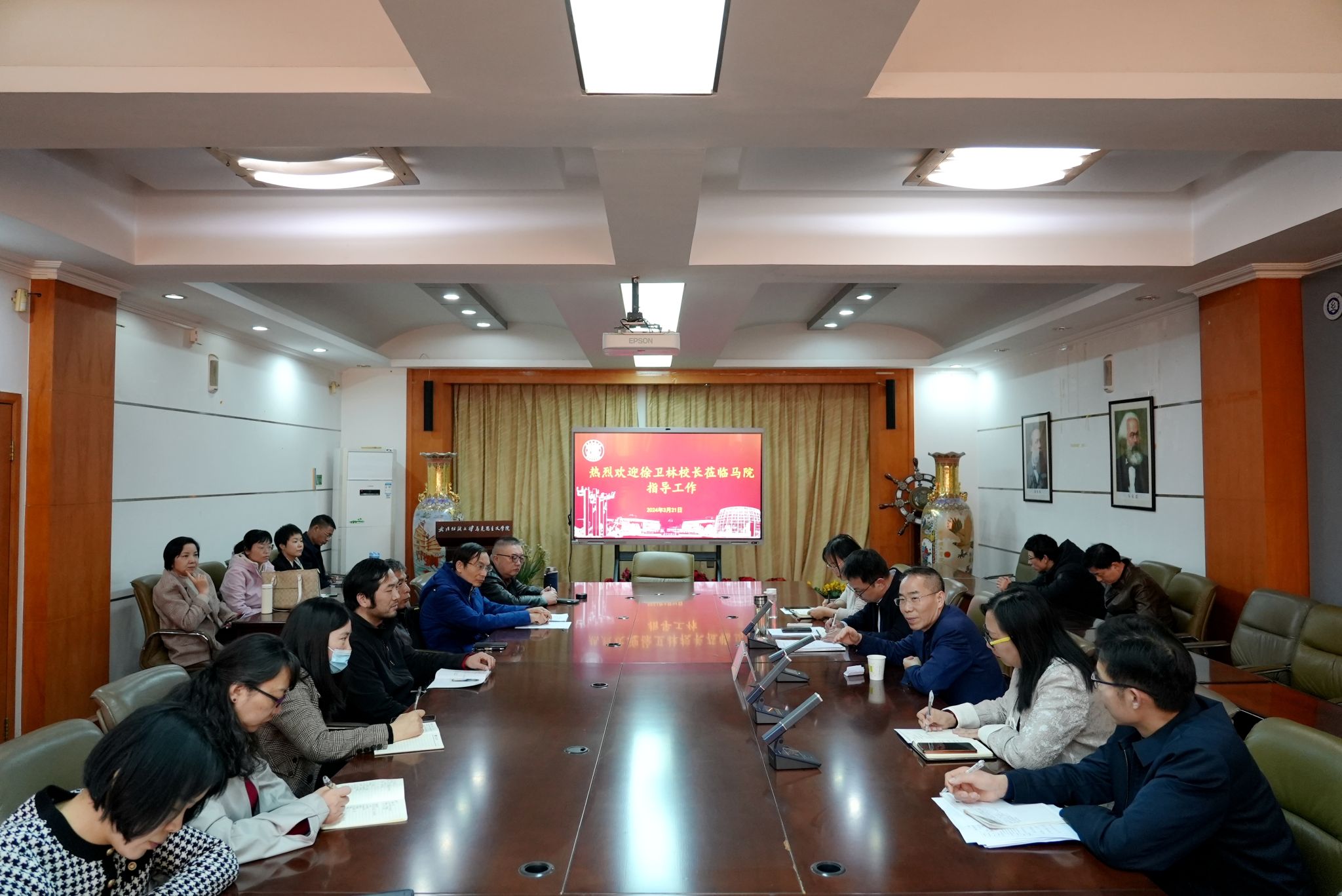 3月21日下午,校长徐卫林到WilliamHill官方网站就学院整体发展和马克思主义学科建设进行调研和指导。WilliamHill官方网站全体教职工参加调研会,院长肖述剑主持会议。