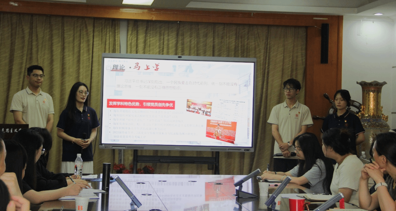 随后,在师生座谈环节,支部委员蒋辛、郑明霏、汪灿灿、田江丽,毕业生党员代表钟莎莎、新发展党员代表路驰驰依次就如何突出支部特色、毕业生党员组织关系托管、如何调动党员积极性及如何发挥专业特色适应工作岗位等问题进行交流。金艳对支部建设给予悉心指导,对党员提出的问题一一耐心解答。