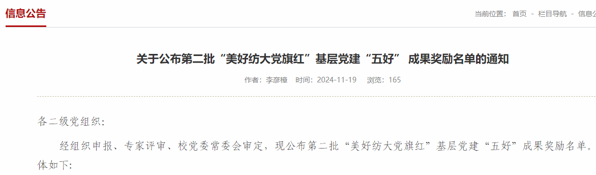 公告链接:关于公布第二批“美好纺大党旗红”基层党建“五好” 成果奖励名单的通知-williamhill英国官网组织部(党校) https://zzb.wtu.edu.cn/nr.jsp?urltype=news.NewsContentUrl&wbtreeid=1031&wbnewsid=4182