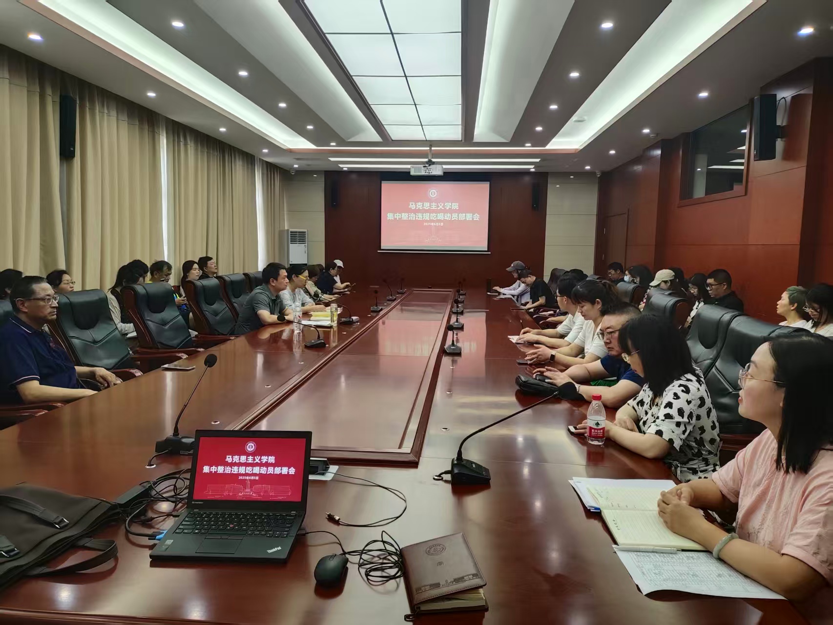 会议指出,违规吃喝问题不仅违反中央八项规定精神,更损害党员干部形象和师生利益,全体教职工必须提高政治站位,以高度的责任感落实专项整治要求,筑牢思想防线,严守纪律底线。