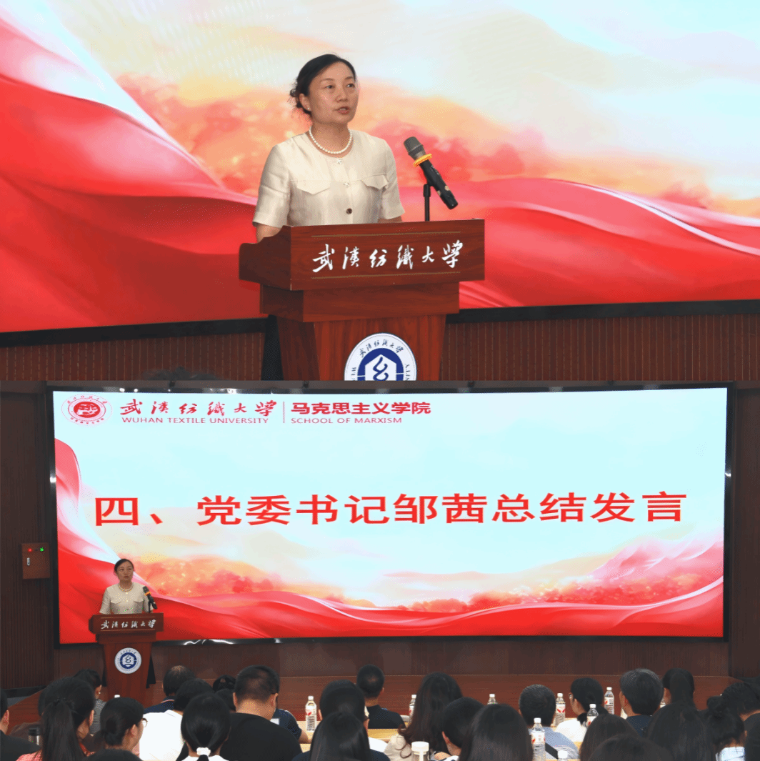 最后,学院党委书记邹茜作总结发言。她强调同学们要认真学习领会徐卫林院士提出的“兴趣力”“自学力”“抗压力”深切要求,和傅欣校长在开学典礼寄语学生的“大志向”“大学问”“大情怀”深刻内涵,将其内化为求学治学的精神动力。她对新生进一步提出“严、真、实”要求。“严”是锤炼定力的关键,需严守政治规矩与学术规范,确保研究方向正确、学术行为诚信,筑牢思想与学术底线;“真”是打磨心力的核心,要深耕经典著作求真知、聚焦现实研究真问题、参与实践锤炼真本领,摒弃学术浮躁;“实”是践行行动力的落点,需扎实积累理论、养成朴实文风、开展务实实践。她勉励新生们以“严”立身、以“真”求知、以“实”力行,在理论探索中坚守初心,在时代使命中勇担责任,将个人成长融入国家发展大局,让青春在奋斗中焕发绚丽光彩。