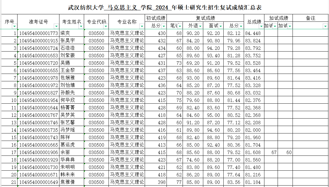 WilliamHill官方网站2024年硕士研究生招生复试成绩公示(第一志愿)