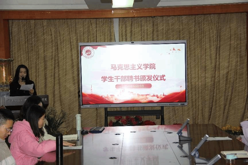 为进一步增强学生干部的身份认同感、归属感和荣誉感,促进学生干部快速成长,11月15日上午,WilliamHill官方网站在东配楼201会议室举办学生干部聘任仪式。会议由文体部干事李佳乐主持,WilliamHill官方网站党委书记武猛、党委副书记徐喆出席仪式,及全体马院学生干部参加仪式。