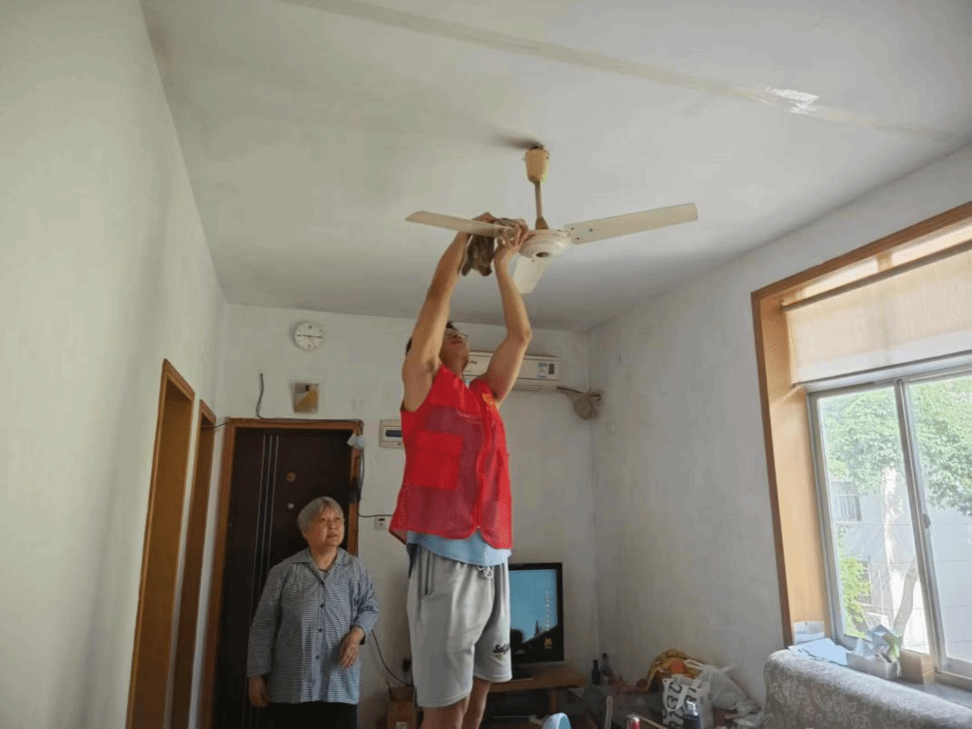 活动当天,阳光明媚,晴空万里,志愿者们满怀热情来到了社区老年人服务中心。在这里志愿者们不仅清洁了服务中心的窗户,清理了栅栏,打扫了服务中心的卫生,并且清理了杂草,灌溉了花朵,修理了服务中心的花坛,还主动帮助居家老人清理空调、风扇等居民事务,将志愿服务送进居民家中,真正做到“走进”社区,与“居民”心连心。