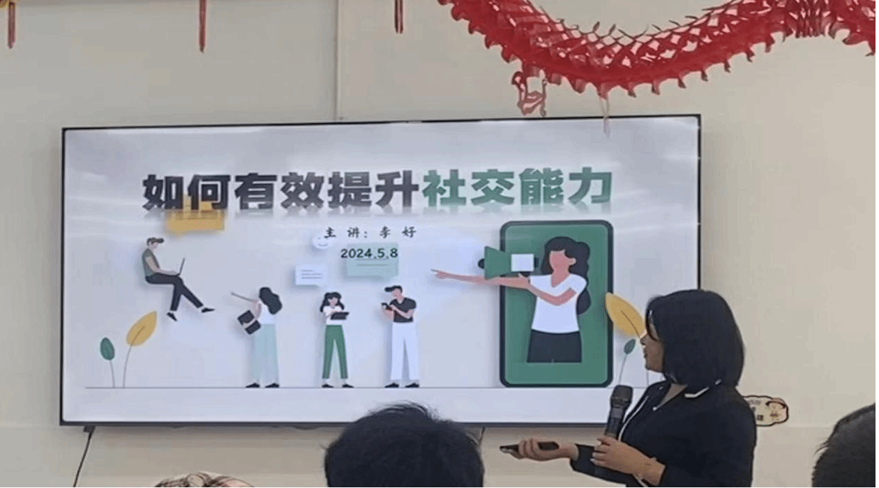 讲座开始,主讲嘉宾李好老师以生动的案例和深刻的观点,讲述了社交能力在现代社会中的重要性。随后,李好详细介绍了提升与陌生人社交能力的具体方法。她强调正确认识自己的重要性,指出正确认识自己是吸引他人、建立良好关系的基础;其次,从倾听、表达和反馈三个方面,详细讲解了如何进行有效的社交,要学会用恰当的语言和方式表达自己的意见和想法;最后,要及时给予对方积极的正面反馈,让对方感受到自己的关注和尊重。此外,老师还分享了一些实用的社交技巧,如主动寻找共同话题、提供情绪价值等。这些技巧不仅能帮助同学们更好地与陌生人建立联系,还能在交往过程中展现出自己的独特魅力。