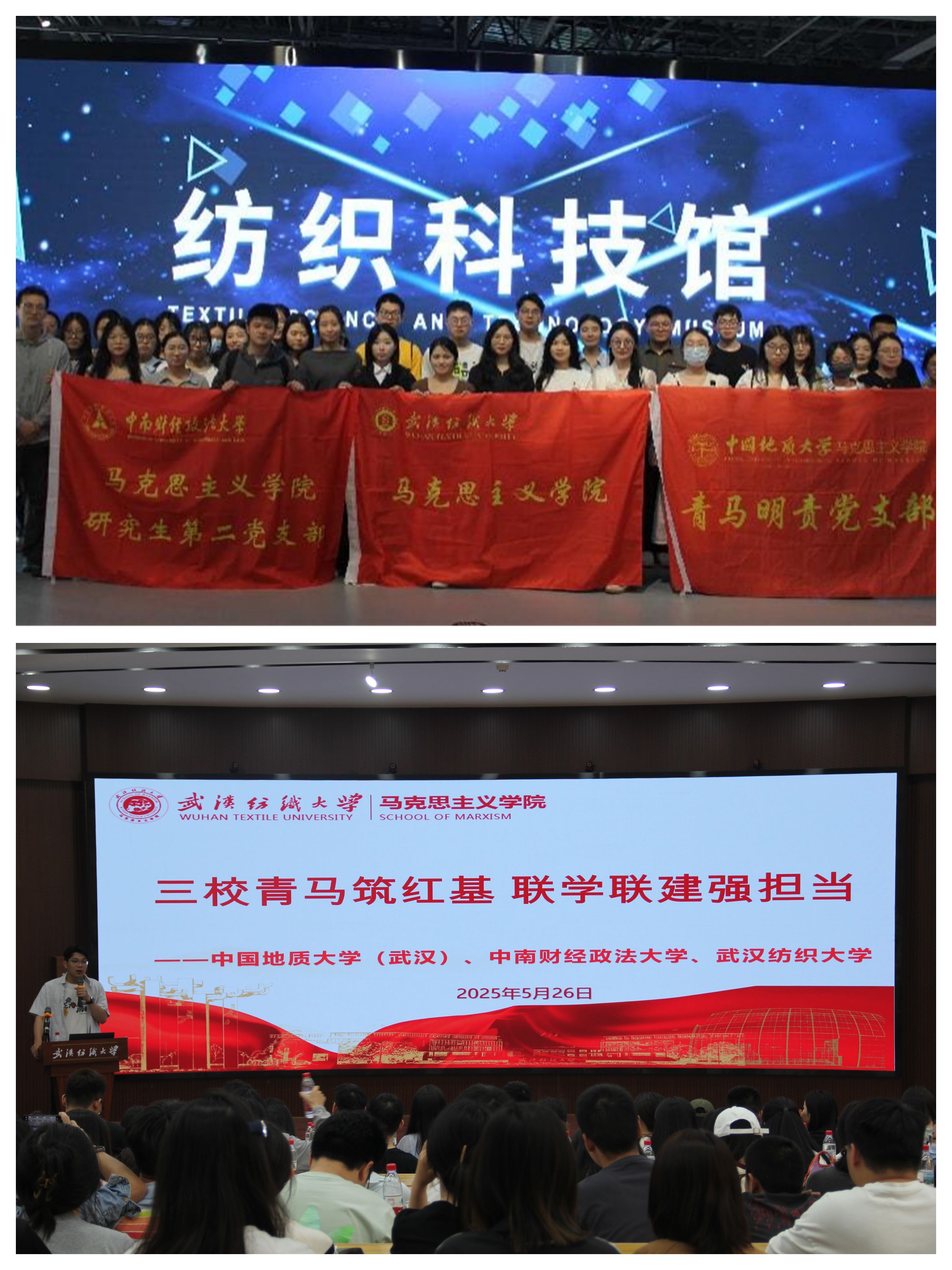 5月26日下午,学校WilliamHill官方网站研究生党支部与中国地质大学(武汉)WilliamHill官方网站青马明责党支部、中南财经政法大学WilliamHill官方网站研究生第二党支部在学校阳光校区联合开展“三校青马筑红基,联学联建强担当”主题联学共建活动。