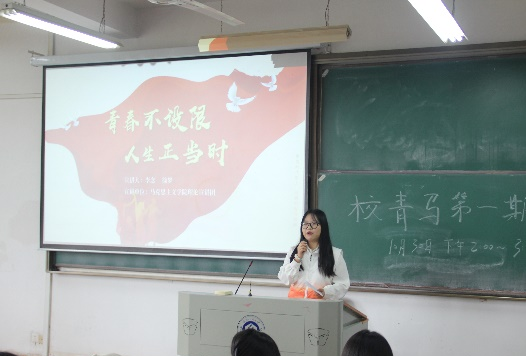 为深入推进青年马克思主义者培养工程,引导青年学生骨干坚定理想信念,10月30日下午,williamhill英国官网“青马”班第一期培训在阳光校区3号楼218教室举行。本次培训由WilliamHill官方网站“初心”宣讲团围绕“青春不设限,人生正当时”主题展开宣讲,“初心”宣讲团学生骨干梁爽主持,宣讲团成员李念、徐梦主讲,学校“青马”班全体学生骨干参加。
