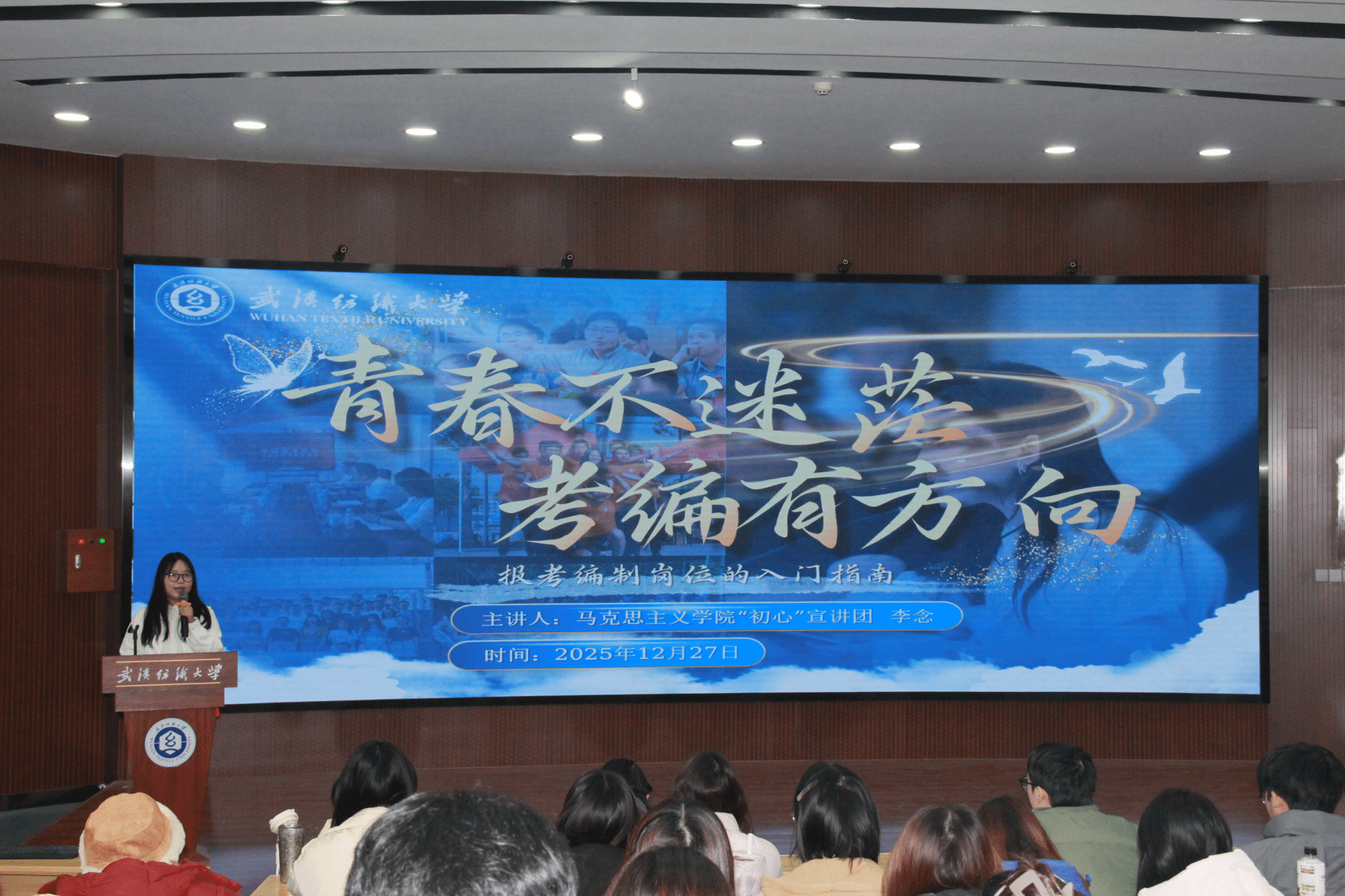 为进一步帮助学校广大青年学子明确方向,科学规划未来发展路径,12月27日下午,williamhill英国官网“青马”班第四次理论学习在阳光校区03-T201思政课虚拟仿真研究中心举行。本次宣讲活动由WilliamHill官方网站“初心”宣讲团负责开展,宣讲内容聚焦“公务员考试、事业编制报考以及研究生考试”三大方向,由“初心”宣讲团学生骨干梁爽主持,校团委学生副书记周玲及宣讲团成员李念、徐梦、梁爽主讲,学校“青马”班全体学生参加。
