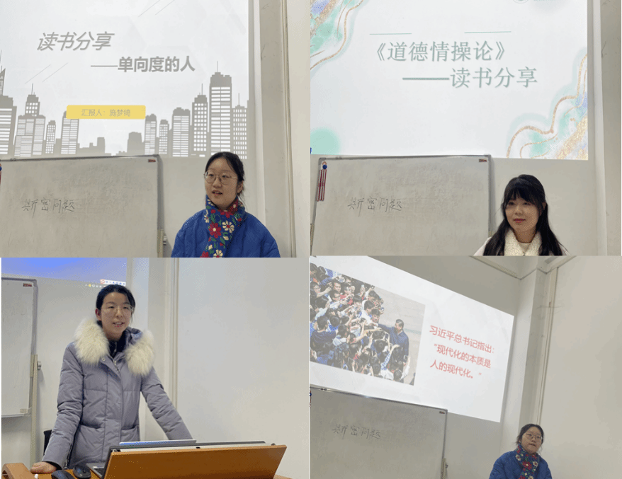 首先,任诗涵对亚当·斯密著作《道德情操论》的写作背景、书本框架和读书感悟等三个方面进行分享。她提到,“合宜性”是思想政治教育内容和方法的要求,结合实际,思政课教学活动的奖惩制度要把握好适度原则。