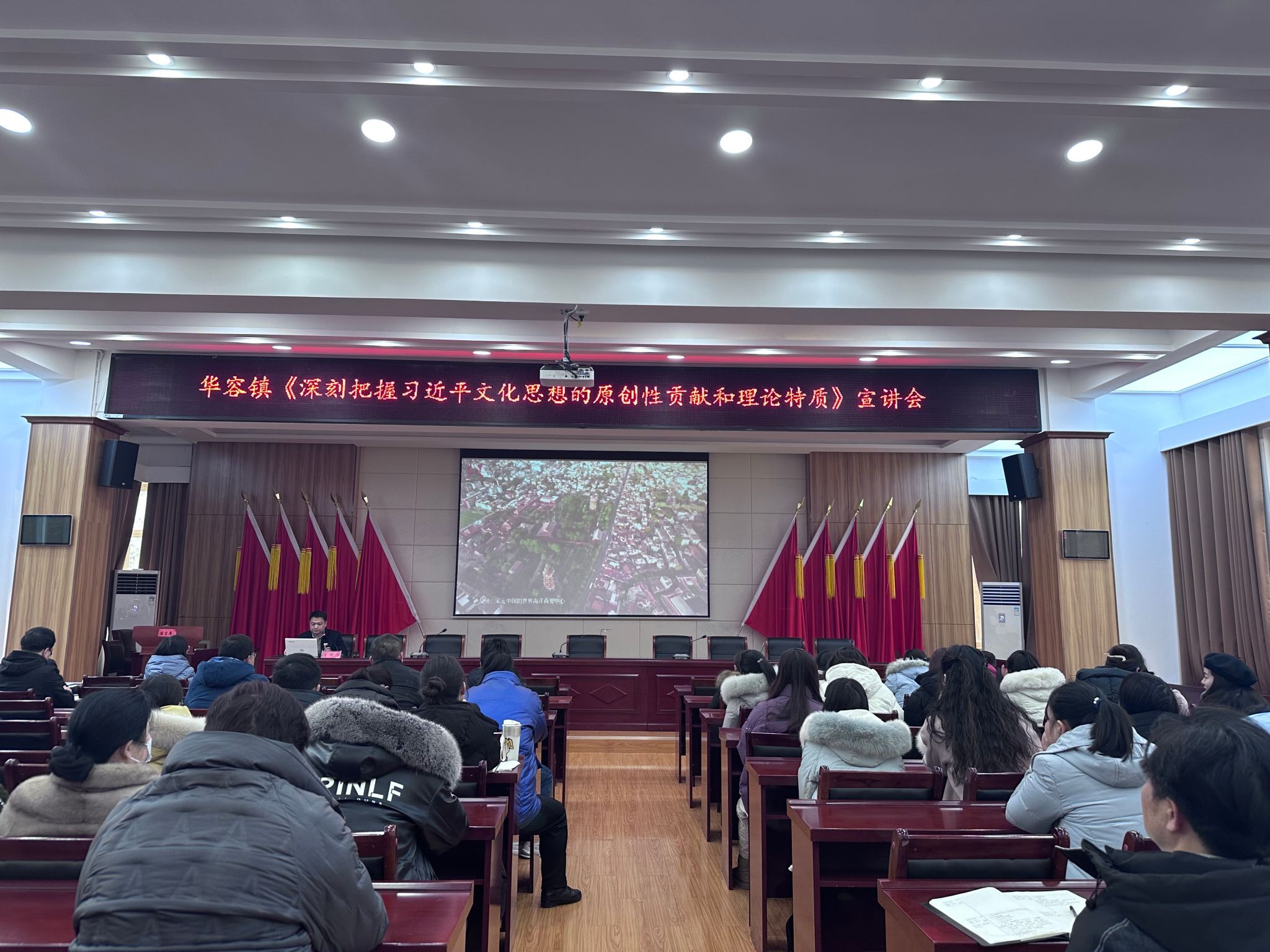 在华容镇政府会议室,WilliamHill官方网站院长肖述剑教授以《深刻把握习近平文化思想的原创性贡献和理论特质》为题,为80多名镇、村(社区)干部和村居党员群众代表进行理论宣讲。他围绕习近平文化思想的原创性贡献、习近平文化思想的理论特质和以习近平文化思想为指引担负新的文化使命等3个方面,用通俗易懂的语言、详实生动的案例、深刻独到的观点,进行鲜活生动的讲解,深受在场党员干部的欢迎。