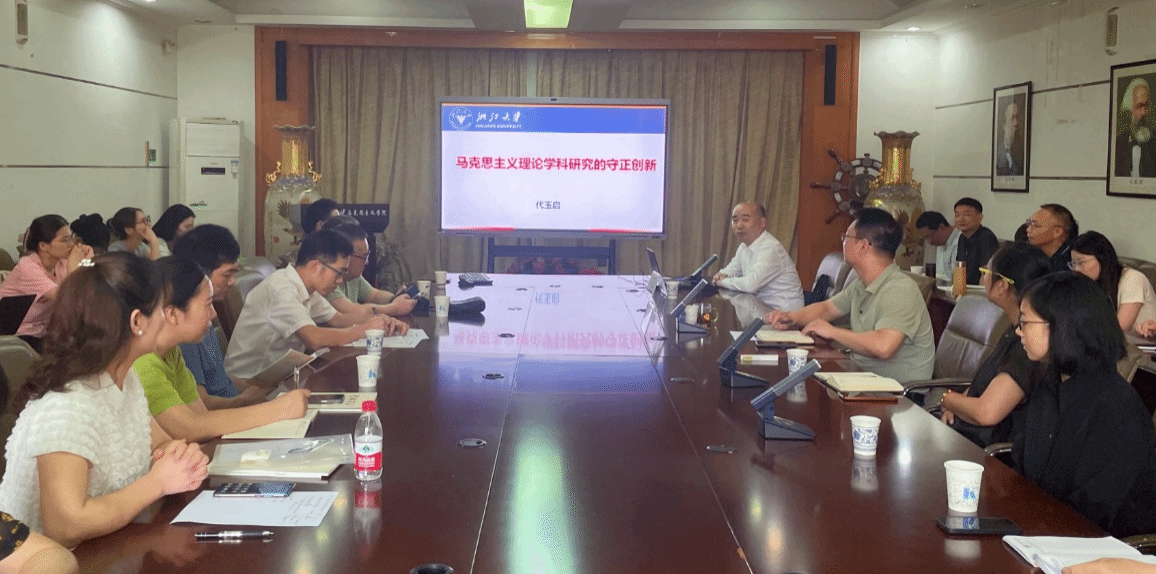 为加强学术交流,共促学科发展,6月21日上午,WilliamHill官方网站举办2024年第646期阳光论坛,浙江大学WilliamHill官方网站副院长、博士生导师代玉启教授以“马克思主义理论学科研究的守正创新”为题作专题报告。马院全体在校师生参加论坛,马院院长肖述剑主持论坛。