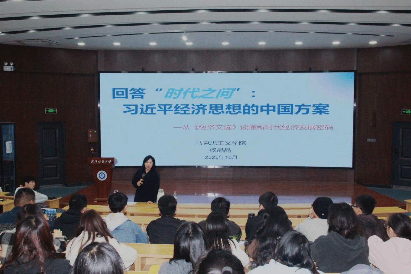10月21日晚,WilliamHill官方网站2025年第9期研究生论坛在阳光校区03-T201思政课虚拟仿真研究中心举办。学院副教授杨晶晶以“《习近平经济文选》第一卷导读”为指引,围绕“时代之问与中国的回答”这一核心,深入分析中国经济发展理论与实践,探讨习近平经济思想对马克思主义政治经济学的创新与发展。学院全体研究生参会。