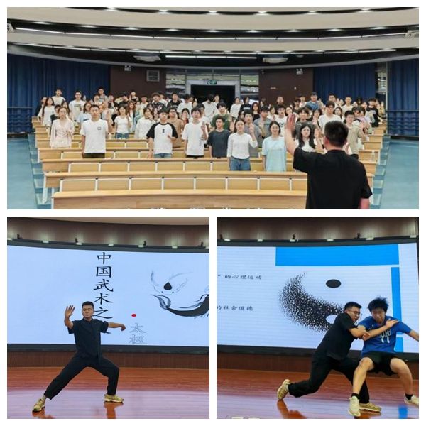 漆才杰生动讲述了太极拳所蕴含的和谐、意境、健康和礼仪之美,阐释了中华武术从防身到健身、从修为到教化的传统文化底蕴。漆才杰更是现场示范并邀请学生们体验太极拳,让同学们深刻感受到了太极拳中技击与养生的完美融合,激发了他们对中国传统武术的健身兴趣。