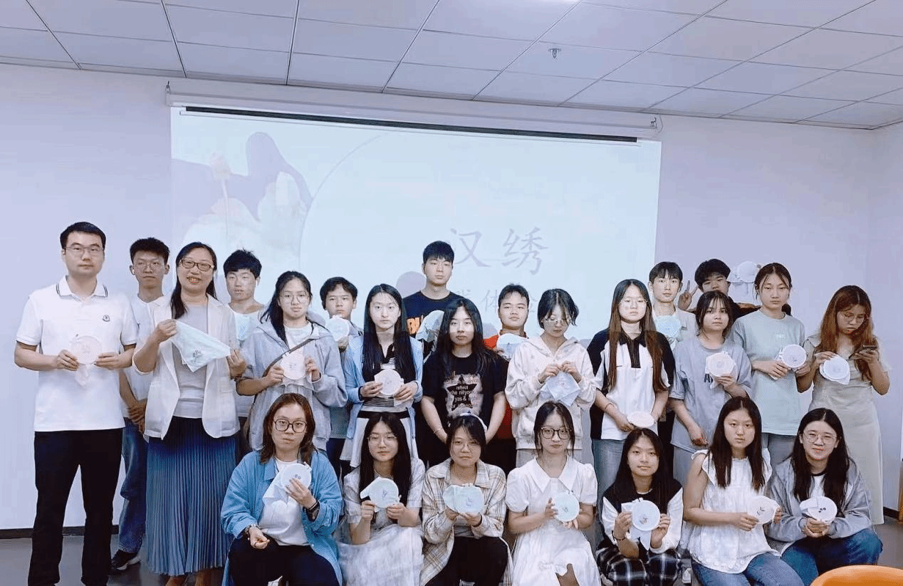 随后,非遗馆工作人员带领师生一同来到湖北省非物质文化遗产研究中心(williamhill英国官网)进行汉绣的实践体验课。课堂上,老师为同学们分发了制作汉绣的工具包,通过现场演示、播放视频、一对一指导的方式为同学们进行汉绣技艺的传授。同学们聚精会神,一针一线紧跟着老师的步骤进行实操练习,并完成一件件精美的汉绣作品。