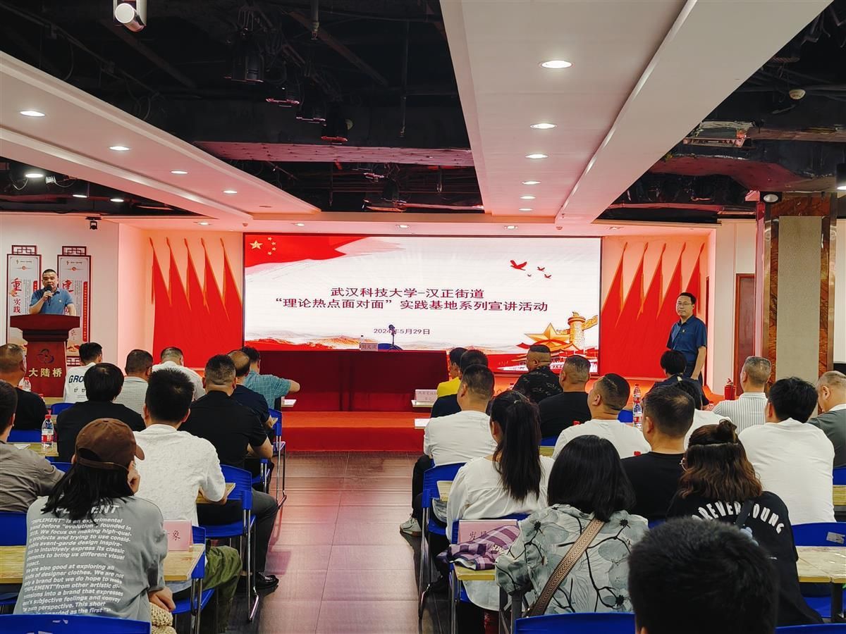 5月29日,武汉市硚口区汉正街武汉中央服务区“理论热点面对面实践基地”联动williamhill英国官网、武汉科技大学专家教授和青年宣讲队,分主题、分领域在江城红领驿站,汉正街党群活动服务中心,汉正街道大新社区、永茂社区新时代文明实践站和汉中街道长寿社区新时代文明实践站同步开展6场专题宣讲、2场热点研讨,范围辐射两个街道,听众涵盖社区工作者、党员代表、居民商户、“两新”党组织书记和发展对象,把党的创新理论送到基层党员群众身边,为建设区域融合发展的“魅力汉正”提供强有力的智力支持和理论保障。