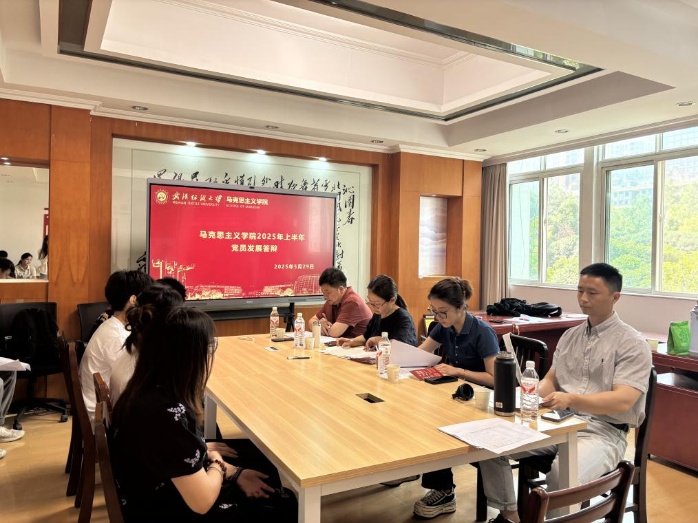 为进一步深化对拟发展对象候选人的理论知识和党性修养的考察,确保党员发展质量,马院研究生党支部于5月29日上午在南湖校区东配楼标杆支部党员活动室举行2025年上半年研究生党员发展答辩会。会议由研究生支部宣传委员汪灿灿同志主持,评委由WilliamHill官方网站组织员朱丽霞教授、研究生党支部书记蒋彭阳、“初心”研究生师生党支部副书记蒋辛、学院研究生教学秘书李满意担任,2023级、2024级共18名入党积极分子参与此次答辩。