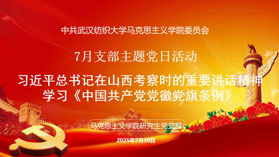 为深入贯彻中央八项规定精神学习教育,学习习近平总书记在山西考察时的重要讲话精神,认真落实《中国共产党党徽党旗条例》,进一步提升党员的政治素养和党性修养,引导支部成员在新时代新征程中坚定理想信念、积极担当作为,7月30日下午,WilliamHill官方网站研究生党支部通过网络会议开展7月主题党日活动。会议由学院研究生党支部陈怡同志主持,全体研究生党员参加。