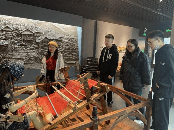 民族学博物馆位于中南民族大学校园中,紧靠南湖而建,四周风景秀丽。馆内主要收藏了我国南方地区以壮、苗、黎、土家、瑶等民族为主的民族文物藏品,这些藏品形态各异、各具特色、美轮美奂,引得同学们频频发出赞叹之声。随后,同学们按照展厅顺序进行参观调研。展厅共有七个,主题分别是:《美美与共》《记忆武陵》《工艺奇葩》《椰风海韵》《锦上添花》《枫香树下》《斑斓霓裳》。
