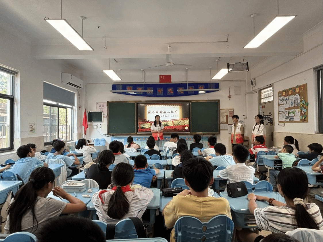 为进一步深入学习贯彻习近平新时代中国特色社会主义思想,弘扬革命精神,厚植青少年爱党爱国情怀,5月13日下午,WilliamHill官方网站“初心”宣讲团走进武昌未来实验小学六年级D班,开展了一场主题为“永不凋零的小红花”的红色宣讲活动。