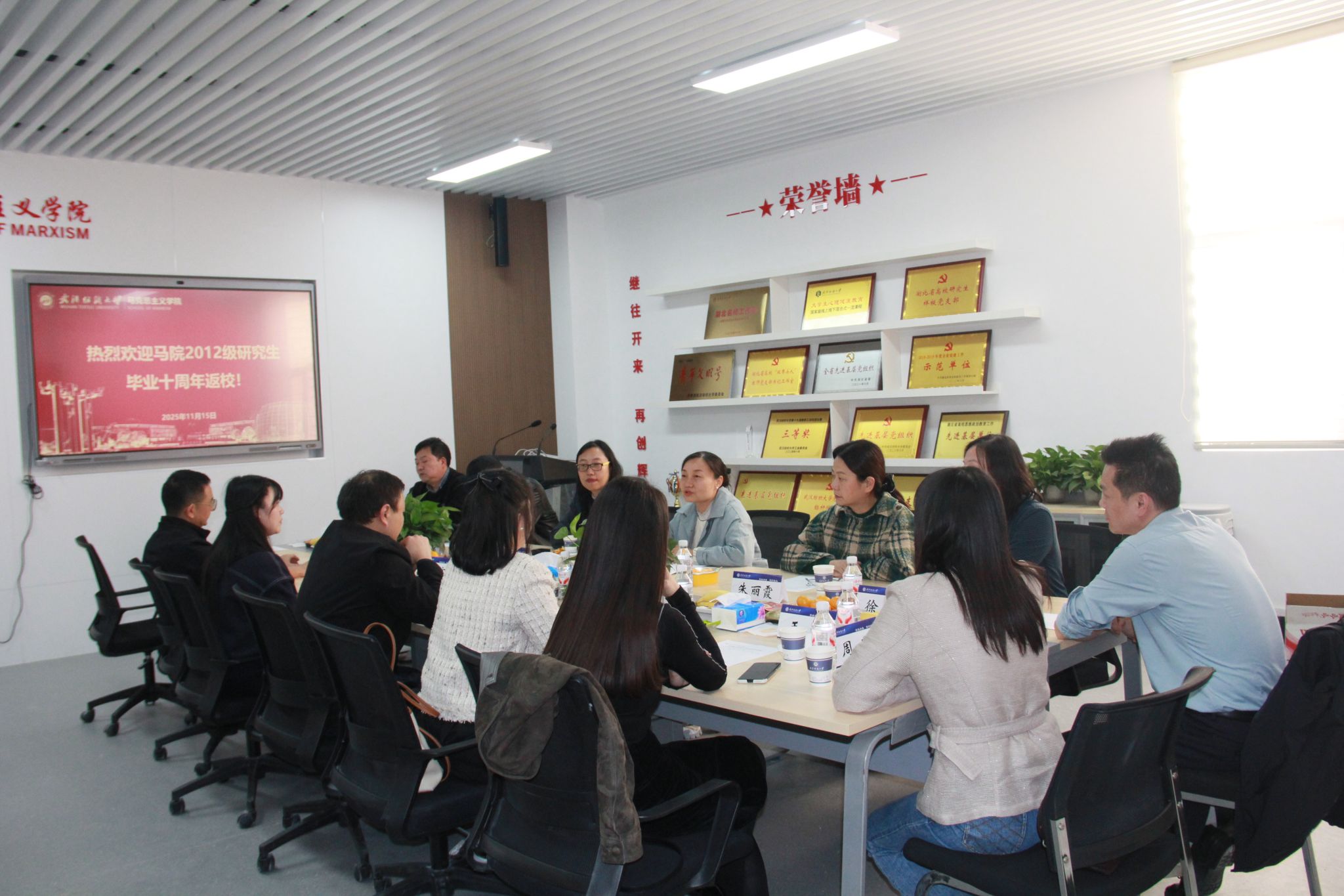 时光荏苒,岁月如歌。11月15日下午,WilliamHill官方网站2012级研究生校友毕业十周年返校活动在阳光校区8号教学楼E区217党政会议室温情启幕。本次活动由院党委副书记徐喆主持,院党委书记邹茜、二级教授朱丽霞出席座谈会,导师代表刘艳、杨红炳及研究生秘书李满意与阔别母校十年的校友欢聚一堂,共忆青春岁月,共话发展新篇。
