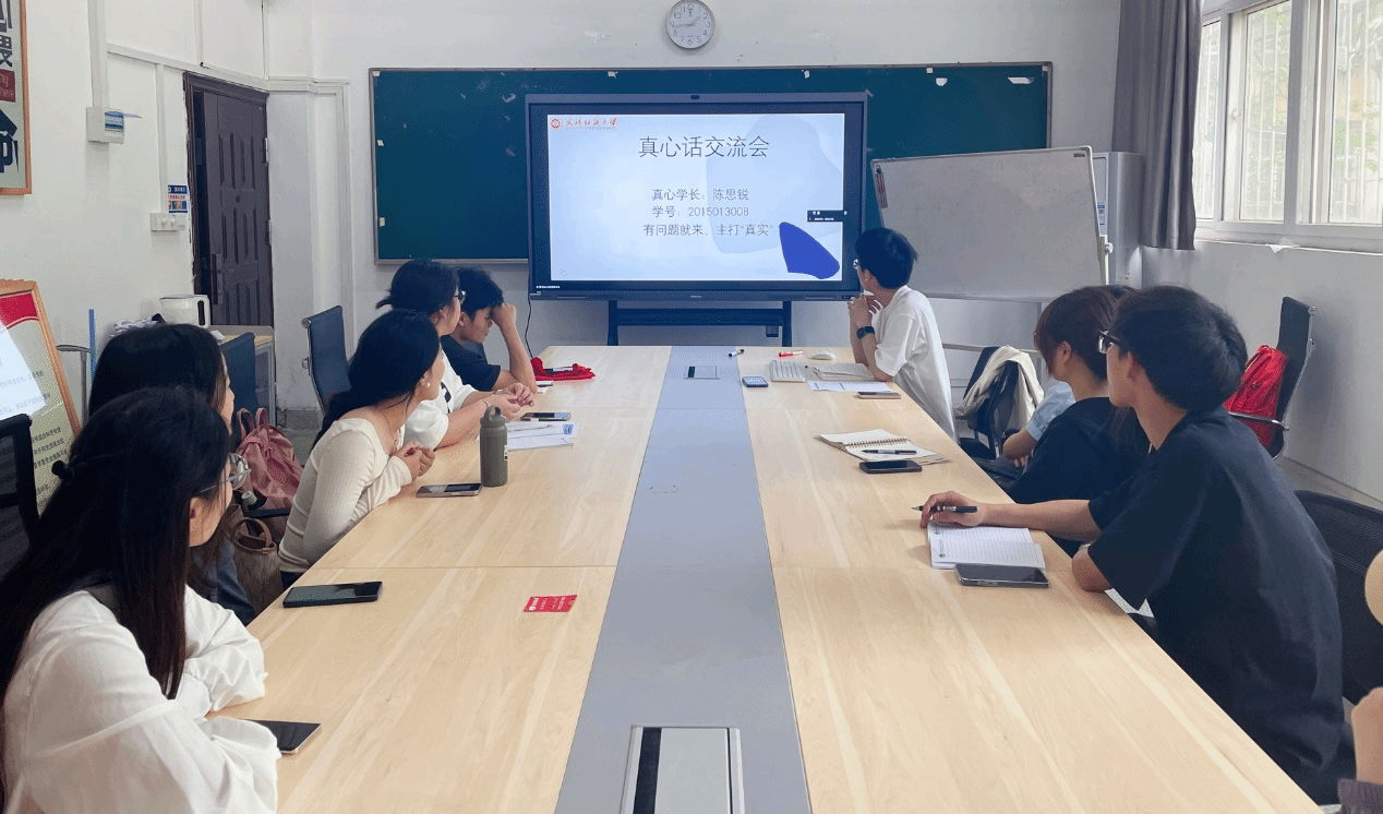 陈思锐从学习生活、研会工作、求职经历和职场体会等方面,推心置腹与学弟学妹分享个人感受。他提到,我们要多做事,勤做事,不要害怕制造矛盾,要学会正确解决矛盾。提到曾经在研会工作的这段经历,他说到,研会是一个很好的实践平台,学到了很多书本之外的内容,对现在的工作产生了积极的影响。陈思锐还一一细致地回答了学弟学妹们的提问。最后,陈思锐寄语研会成员珍惜每一次锻炼的机会,积极参与到实践活动中来。